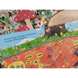 Het boek "Boom" vertelt het verhaal van bosdieren die in de titelboom leven. Een specht slaat op de bast van een boom en eet de larven op, en een uil slaapt zoet in een holte. Tussen de bladeren, in de boomkruinen, zitten mezen en mezen te zingen. In de schaduw op het gras dartelen konijntjes en rennen muizen. Wat is er onder de grond? Daar, midden in de wirwar van wortels, graven mollen hun holen.