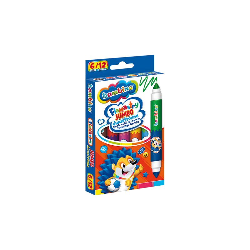 Jumbo dubbelzijdige stiften zijn een perfecte keuze voor kinderen die graag tekenen en creëren. Elk van de 6 stiften heeft twee verschillend gekleurde punten, dus je vindt 12 levendige kleuren in de set!