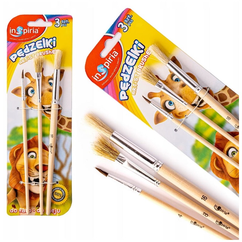 Een set van 3 veelzijdige penselen voor het schilderen met plakkaatverf, aquarelverf, tempera of acrylverf. Gemaakt met zachte, synthetische haren die de verf soepel verdelen en lichtgewicht handvatten voor comfort. Ze zijn perfect voor zowel kinderen als beginnende kunstenaars.