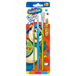 Een set van 3 Bambino-penselen, ideaal voor het schilderen met plakkaatverf, aquarelverf of tempera. Gemaakt met zachte, synthetische haren die de verf gelijkmatig verdelen, en lichtgewicht, comfortabel in de hand liggende handvatten. Perfect voor kinderen en beginnende kunstenaars.