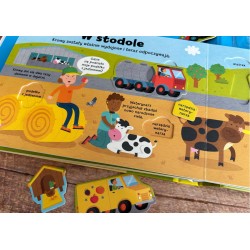 In het puzzelboek "Landelijk Leven. Leren en Spelen" vinden kinderen scènes uit de tuin, het veld, de schuur en de markt. Ze leren over verschillende diersoorten, groenten en fruit. Er zijn ook landbouwmachines en -gereedschappen. Er is altijd wel iets te doen op het platteland. Er zijn koeien om te melken, verse eieren om te rapen, schapen om te scheren, aardbeien en bramen om te plukken. Een dierenarts is ook op de boerderij geweest om een pasgeboren kalf te onderzoeken.