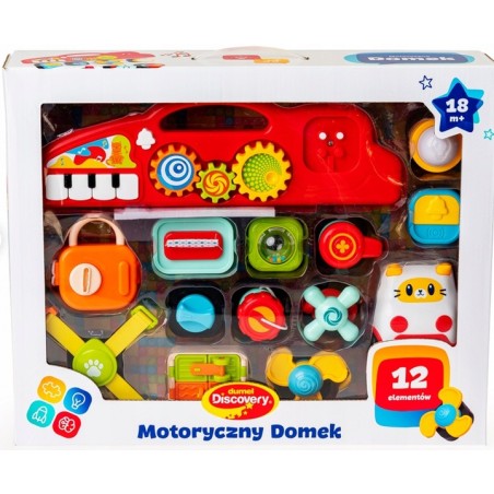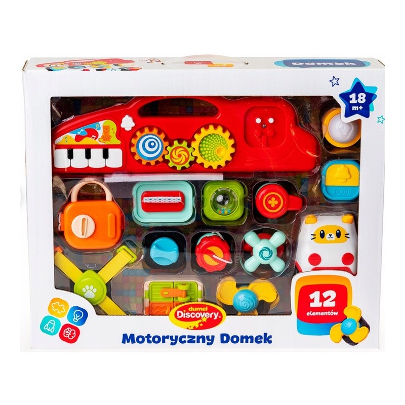 Gemaakt met kleine ontdekkingsreizigers en bouwsteenliefhebbers in gedachten! Dit kleurrijke huis ontwikkelt de behendigheid, motoriek en creativiteit van kinderen door een veelvoud aan activiteiten in één set te bieden. Elk onderdeel van het huis verbergt een interactieve verrassing: een draaiend windmolentje, schuifgrendels, een sluiting, draai-en-rij-elementen en tandwielen. Het dak is voorzien van een praktische handgreep en een geluidspaneel met een minipiano en ruimte voor een actieve steen met een bel of lampje.