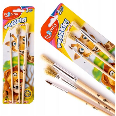 Zestaw 3 uniwersalnych pędzelków do malowania farbami plakatowymi, akwarelami, temperami czy akrylami. Wykonane z miękkiego, syntetycznego włosia, które dobrze rozprowadza farbę, oraz lekkich trzonków zapewniających wygodę użytkowania. Sprawdzą się zarówno dla dzieci, jak i początkujących artystów.